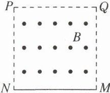 【典例8】(多选)如图所示,在边长为$L$的正方形$PQMN$区域内存在垂直纸面向外、磁感应强度大小为$B$的匀强磁场,在$MN$边界放一刚性挡板,粒子能碰到挡板则能够以原速率弹回。一质量为$m$、带电荷量为$q$的粒子以某一速度从$P$点射入,恰好从$Q$点射出,下列说法正确的是 ( )