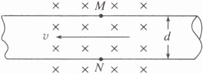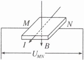 【典例 8】霍尔元件是一种应用霍尔效应的磁传感器,广泛应用于各领域,如在平板电脑、手机的保护盖及笔记本电脑中,常用霍尔元件来控制翻盖时亮屏唤醒,合盖时熄屏待机。如图是一霍尔元件的示意图,磁场方向垂直霍尔元件工作面,霍尔元件宽为$d$($M$、$N$间距离),厚$h$(图中上下面距离),当通以图示方向电流时,$MN$两端将出现电压$U_{MN}$,