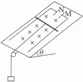 AB 解析 设运动过程中经时间Δt,导体棒的速度增加Δv,对电容器,两极板的充电电流I = $\frac{\Delta Q}{\Delta t}=\frac{C\Delta U}{\Delta t}=\frac{CBL\Delta v}{\Delta t}$,对导体棒受力分析,由牛顿第二定律有2mgsin30° + F$_T$ - BIL = 2ma;对重物分析,有mg - F$_T$ = ma,又$\frac{\Delta v}{\Delta t}$ = a,解得a = $\frac{2mg}{3m + CB^{2}L^{2}}$,加速度恒定,所以导体棒在到达导轨底端前做匀加速直线运动,电容器两极板所带电荷量随时间均匀增加,由右手定则可知,M板带正电,A项正确;经时间t,导体棒的速度v = $\frac{2mgt}{3m + CB^{2}L^{2}}$,B项正确;由A项分析可知回路中电流恒定,C项错误;重物和导体棒在运动过程中减少的重力势能一部分转化为动能和回路的焦耳热,一部分转化为电容器储存的电能,D项错误。