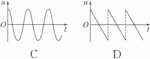 此时导体棒的有效切割速度为$v_{1}=v\cos\theta$,则导体棒在匀速转动的过程中,导体棒两端的电势差为$u = Blv_{1}=Blv\cos\theta = Blv\cos\frac{vt}{R}$,C项正确。