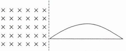 【典例4】如图所示,闭合金属线框曲线部分恰好是半个周期的正弦曲线,直线部分长度为$0.4\ m$,线框的电阻为$1\ \Omega$,若线框从虚线位置开始以$2\ m/s$的速度匀速进入足够大的匀强磁场(线框直线部分始终与磁场右边界垂直),这个过程中线框释放出的焦耳热为$0.4\ J$,线框中电流随时间变化的关系式为 ( )