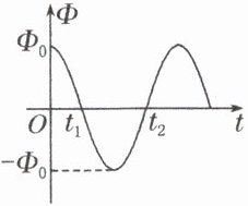 【典例2】某矩形线圈在匀强磁场中绕垂直于磁场的轴匀速转动,通过线圈的磁通量随时间按如图所示的规律变化,当$t = 0$时,$\varPhi = \varPhi_{0}$,图中$\varPhi_{0}$、$t_{1}$、$t_{2}$均已知,则下列说法正确的是 ( )