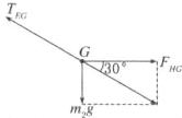 与竖直方向成60°角,斜向右上方),A项错误;题图乙中,以G为研究对象,分析受力情况如图,由平衡条件得FHGtan30°=