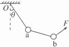 A 解析 以两个小球组成的整体为研究对象,分析受力,作出$F$在三个方向时整体的受力图,根据平衡条件知,$F$与$F_{T}$的合力与重力$2mg$总是大小相等、方向相反的,由力的合成图可知,当$F$与$O$、$a$间细绳垂直时,$F$有最小值,即图中$2$位置,根据平衡条件得:$F = 2mg\sin30^{\circ}=mg$,$F_{T}=2mg\cos30^{\circ}=\sqrt{3}mg$,$A$项正确。