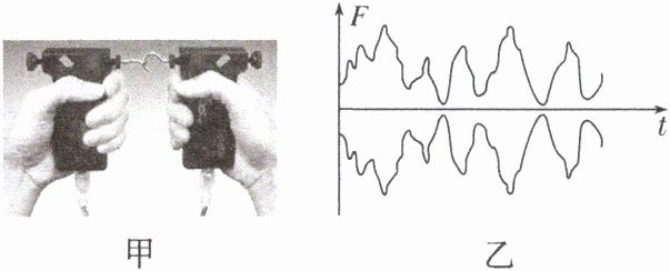 【典例7】如图甲,用两个力传感器的挂钩勾在一起,向相反方向拉动,显示器屏幕上显示的结果如图乙所示。观察相互作用力随时间变化的真实实验曲线,可以得到以下实验结论 ( )