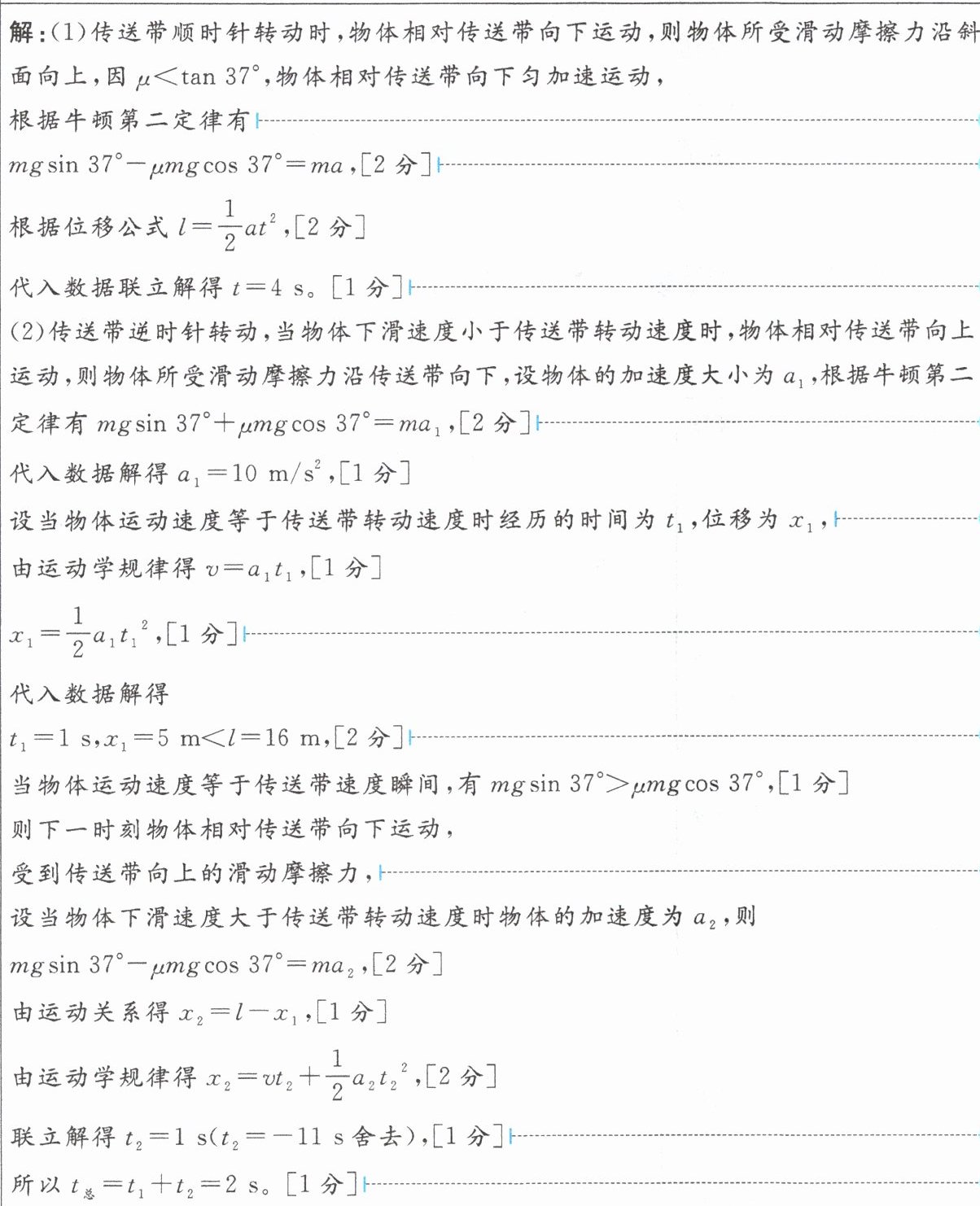 (2)传送带逆时针转动时,物体从顶端A滑到底端B的时间。