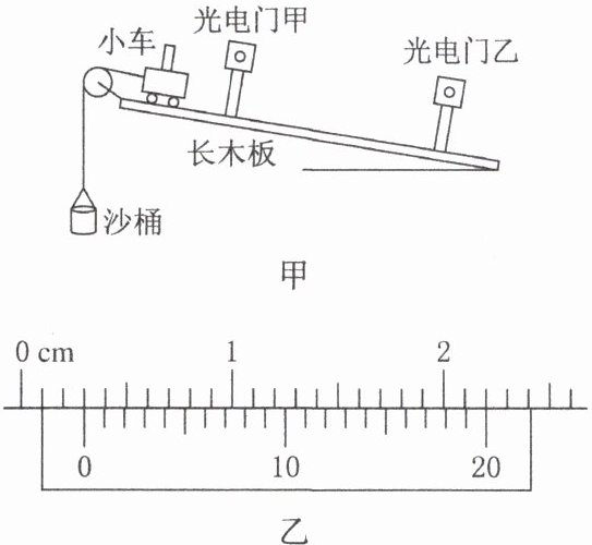 D. 保持长木板的倾角不变,不挂沙桶,将小车置于靠近滑轮的位置,由静止释放小车,记录小车先后通过光电门甲和乙时显示的时间;