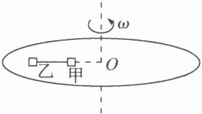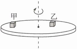 D 解析 甲、乙两个物体随旋转圆台转动时,角速度相同。根据an=²r 得$\frac{a}{ae}$=$\frac{2R}{R}$=21,A项错误;根据牛顿第二定律F俨=m².2R,F忆=mu².R,甲受到的静摩擦力大,B项错误;对甲物体,最大静摩擦力提供向心力时,角速度达到临界值1μmg=mo².2R,解得纠w= C项错误;对乙物体,最大静摩擦力提供向心力时,角速度达到临界值μmg=mw²R,解得w= $\sqrt{R}$,因为幼.<幼∠,当圃台转速增大时,甲物体先滑动,D项正确。