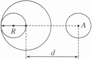 D 解析 根据公式$m = \rho\frac{4}{3}\pi r^{3}$可知,挖去小球质量等于原小球的$\frac{1}{8}$,则有$m=\frac{1}{8}M$,设没挖去前,对小球的引力为$F_{1}=\frac{GMm}{d^{2}}=\frac{GM\cdot\frac{1}{8}M}{4R^{2}}=\frac{GM^{2}}{32R^{2}}$,挖去部分对小球的引力$F_{2}=G\frac{\frac{1}{8}M\times\frac{1}{8}M}{(d + \frac{R}{2})^{2}}=\frac{GM^{2}}{400R^{2}}$,则放置于A处的小球与大球剩余部分的万有引力为$F = F_{1}-F_{2}$,联立解得$F=\frac{23GM^{2}}{800R^{2}}$,D项正确。
