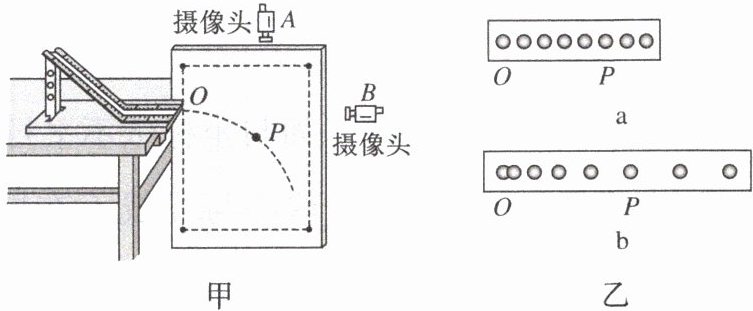 (1)乙图中,$A$处摄像头所拍摄的频闪照片为______(填“$a$”或“$b$”)。