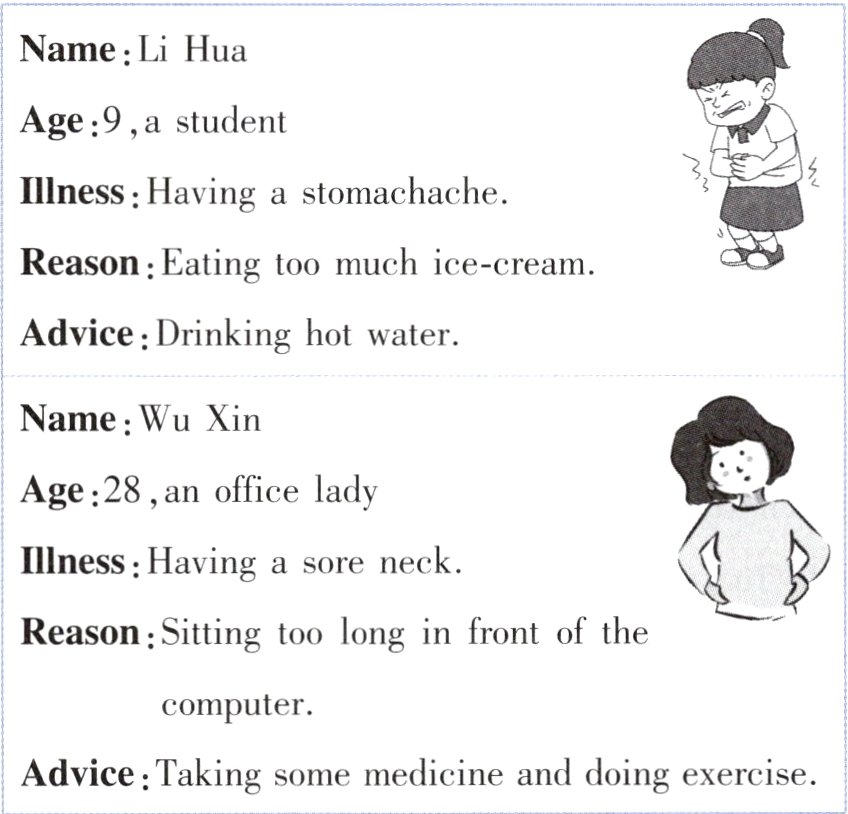 Do you have healthy habits? Do you ever hurt yourself? If these happen to you, you should see a doctor. Doctor Li had a busy morning. Here are three of his patients.