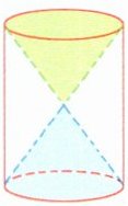 4. 如图所示,一个高为15厘米、底面半径为5厘米的圆柱体,从两端各挖去一个等高的圆锥体,求剩余部分的体积。