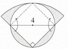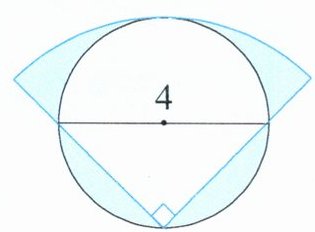 5. 如图是由一个圆与一个直角扇形重叠组成的,其中圆的直径与扇形的半径都是$4$。图中涂色部分的面积是多少?($\pi$取$3.14$)