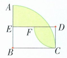 2. 如图,长方形$BCDE$的长$BC = 6$cm,宽$BE = 3$cm,求涂色部分的面积。