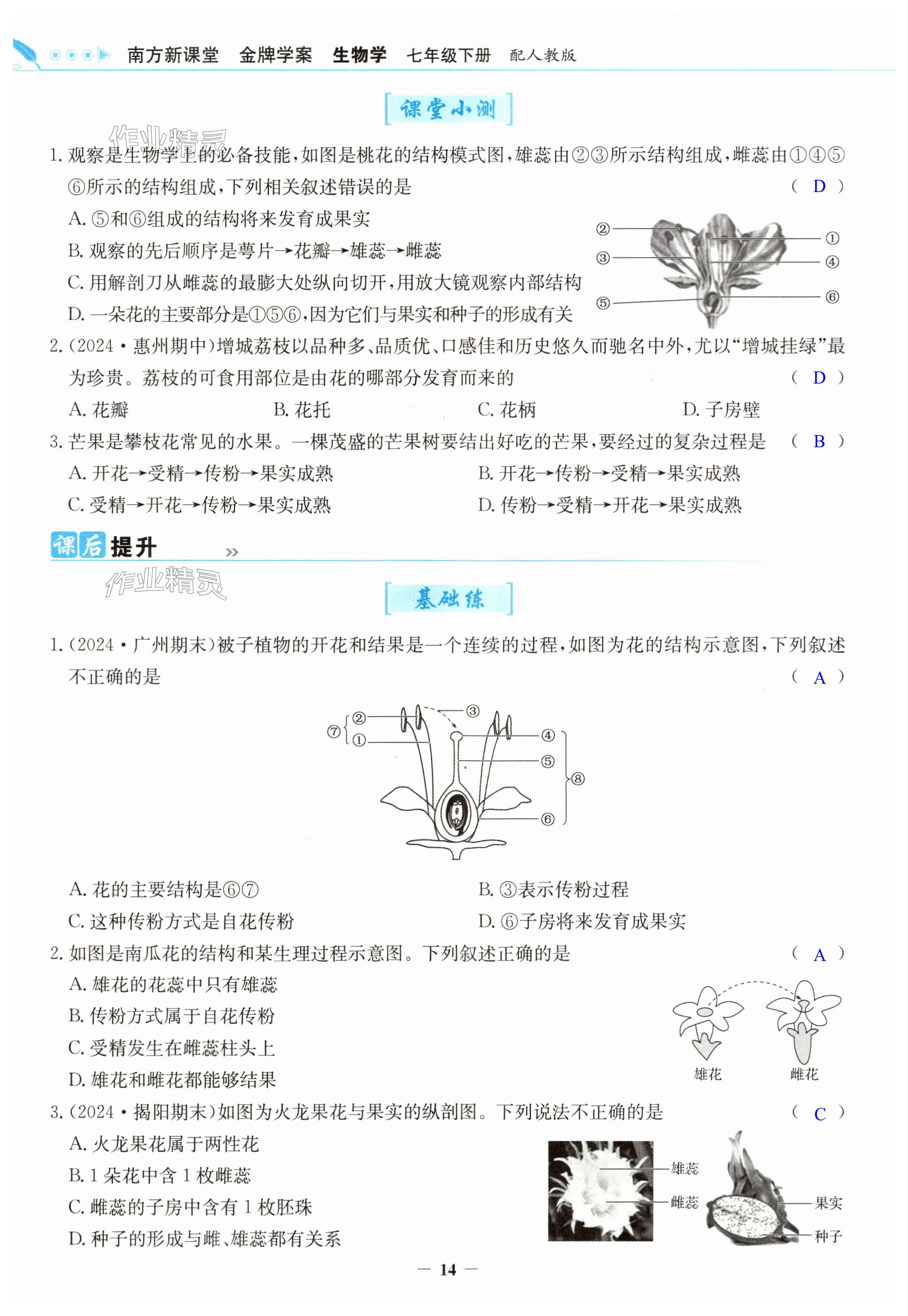 注:目前有些书本章节名称可能整理的还不是很完善,但都是按照顺序排列的,请同学们按照顺序仔细查找。练习册 2025年南方新课堂金牌学案七年级生物下册人教版 答案主要是用来给同学们做完题方便对答案用的,请勿直接抄袭。