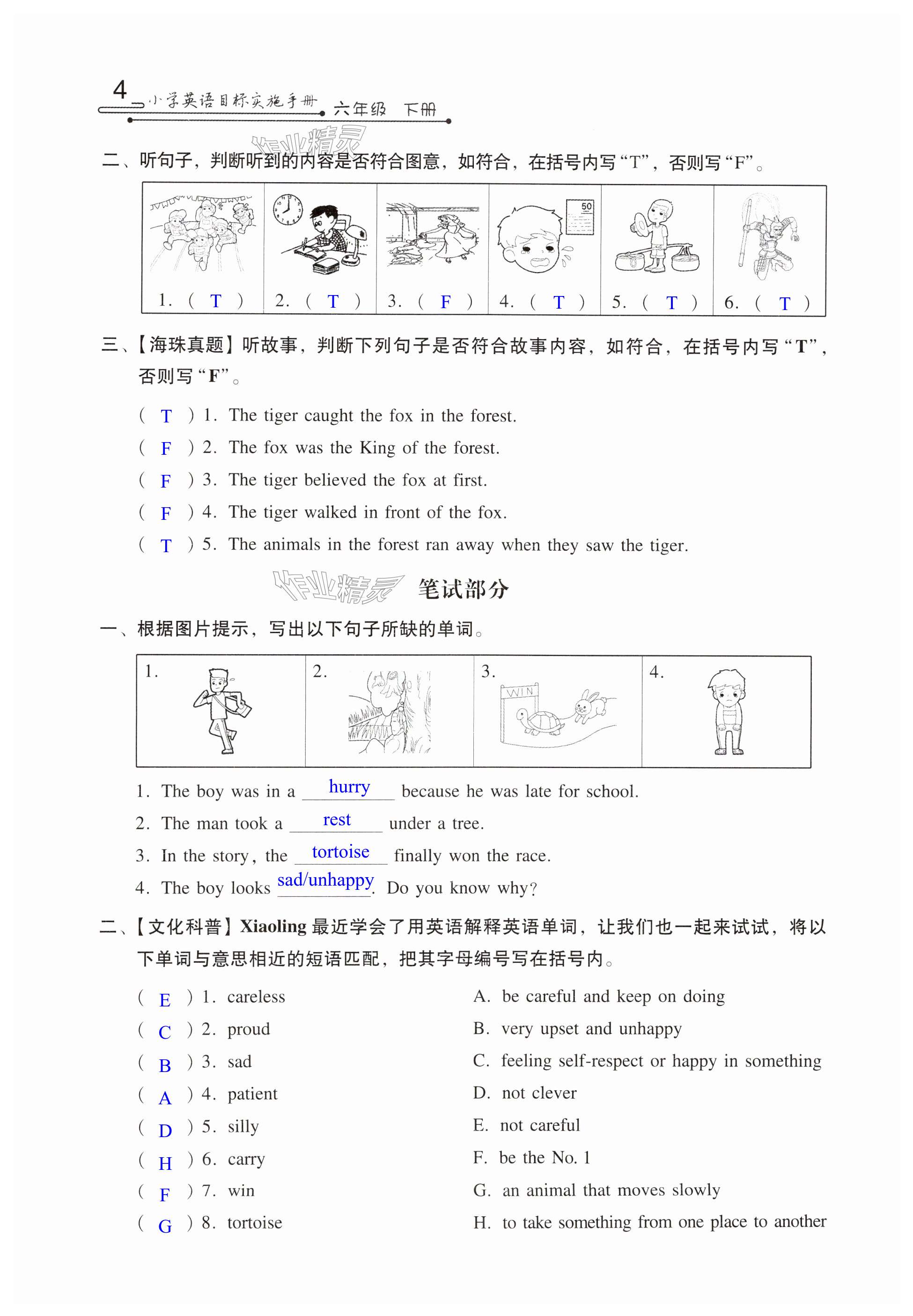 注:目前有些书本章节名称可能整理的还不是很完善,但都是按照顺序排列的,请同学们按照顺序仔细查找。练习册 2025年目标实施手册六年级英语下册教科版广州专版 答案主要是用来给同学们做完题方便对答案用的,请勿直接抄袭。