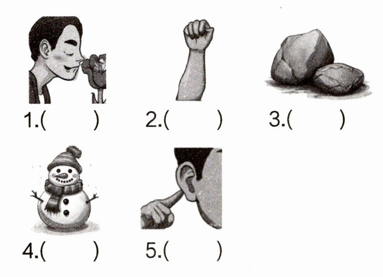( )4. A. 我用眼睛看东西。 B. 我用耳朵听声音。