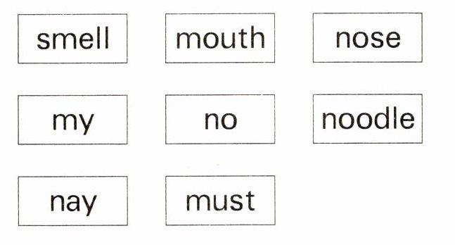 二、将与 small 中“m”发音相同的单词卡涂成红色,将发音不同的涂成蓝色。