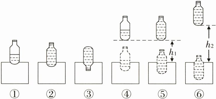 20. (2022·天津中考)热爱劳动的津津,在家学做天津特色菜“贴饽饽熬鱼”时,一个饮料瓶不小心落到了松软的玉米面团上,在面团上留下较深的痕迹. 于是他灵机一动,利用玉米面团和装有水的饮料瓶,依次做了如图所示的实验,对如下两个问题进行了探究.