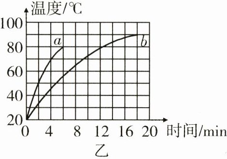 (2)小明选用了燃料 a 和燃料 b 进行实验,当燃料燃尽时,小明记下了各个时刻烧杯中水的温度,绘制了图乙所示的图象,可判断燃料________的热值大.