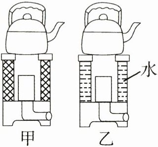 21. (8 分)如图甲所示,1 个标准大气压下,普通煤炉把壶内 20 ℃、5 kg 水烧开需要完全燃烧一定质量的煤,此过程中,烧水效率为 28%. 为提高煤炉效率,某大学创意小组设计了双加热煤炉,如图乙所示,在消耗等量煤烧开壶内初温相同、质量相等的水的过程中,还可额外把炉壁间 10 kg 水从 20 ℃加热至 40 ℃,q煤 = 3×10⁷ J/kg,c水 = 4.2×10³ J/(kg·℃),以上过程中: