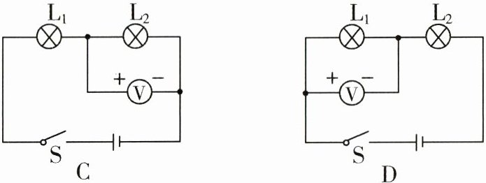 4.(教材变式题)如图所示,能正确地测出小灯泡L₁两端电压的电路是 ( )