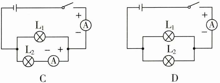 3. 下图中两灯规格不同,能测出通过灯L₁电流的电路是 ( )