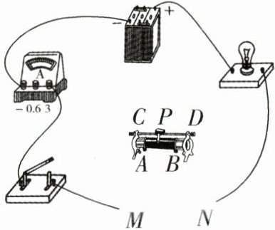 3. (2022·南宁期中)如图是未连接完整的电路,若要求闭合开关后,滑动变阻器的滑片P向右移动时,灯泡变暗.则下列接法符合要求的是 ( )