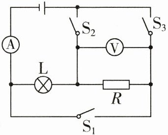 (1)当开关$S_1$、$S_2$断开,$S_3$闭合时,由题图可知,小灯泡L与$R$串联,电压表测$R$两端电压,$U_R = 2.5V$,电流表测电路中的电流,$I = 0.5A$,电阻$R$的阻值$R = \frac{U_R}{I} = \frac{2.5V}{0.5A} = 5\Omega$.