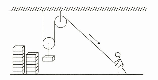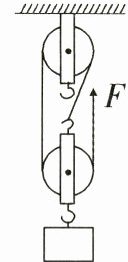 23. (6 分)建筑工地上,工人们需要将一堆建材运到 10 m 高处. 小董设计安装了如图所示的装置. 装置中每个滑轮重 100 N. 工人利用该装置每次匀速提升一块重 900 N 的建材,建材上升的速度是 0.6 m/s,在施工过程中,求:
