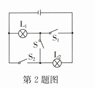 2. 如图所示,只闭合开关S时灯L₁的功率为9 W;断开开关S,闭合S₁、S₂时,灯L₁的功率为25 W. 电源电压不变,忽略温度对灯丝电阻的影响. 则L₁与L₂的电阻之比是 ( )