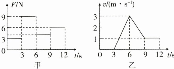9. (2022·厦门思明二模)在粗糙程度均匀的水平地面上运动的物体,受到方向不变的水平拉力$F$的作用,其$F - t$和$v - t$图象分别如图甲和乙所示。下列有关拉力做功及功率的分析正确的是( )