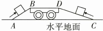11. (2022·威海中考)如图所示,为了把两件相同货物搬运到汽车上,工人用相同材质的木板搭建了$AB$、$CD$两个斜面,用沿斜面向上的力将其中一件货物从斜面$AB$的底端匀速推到顶端,另一件货物用同样的方法沿斜面$CD$推动。下列说法正确的是( )