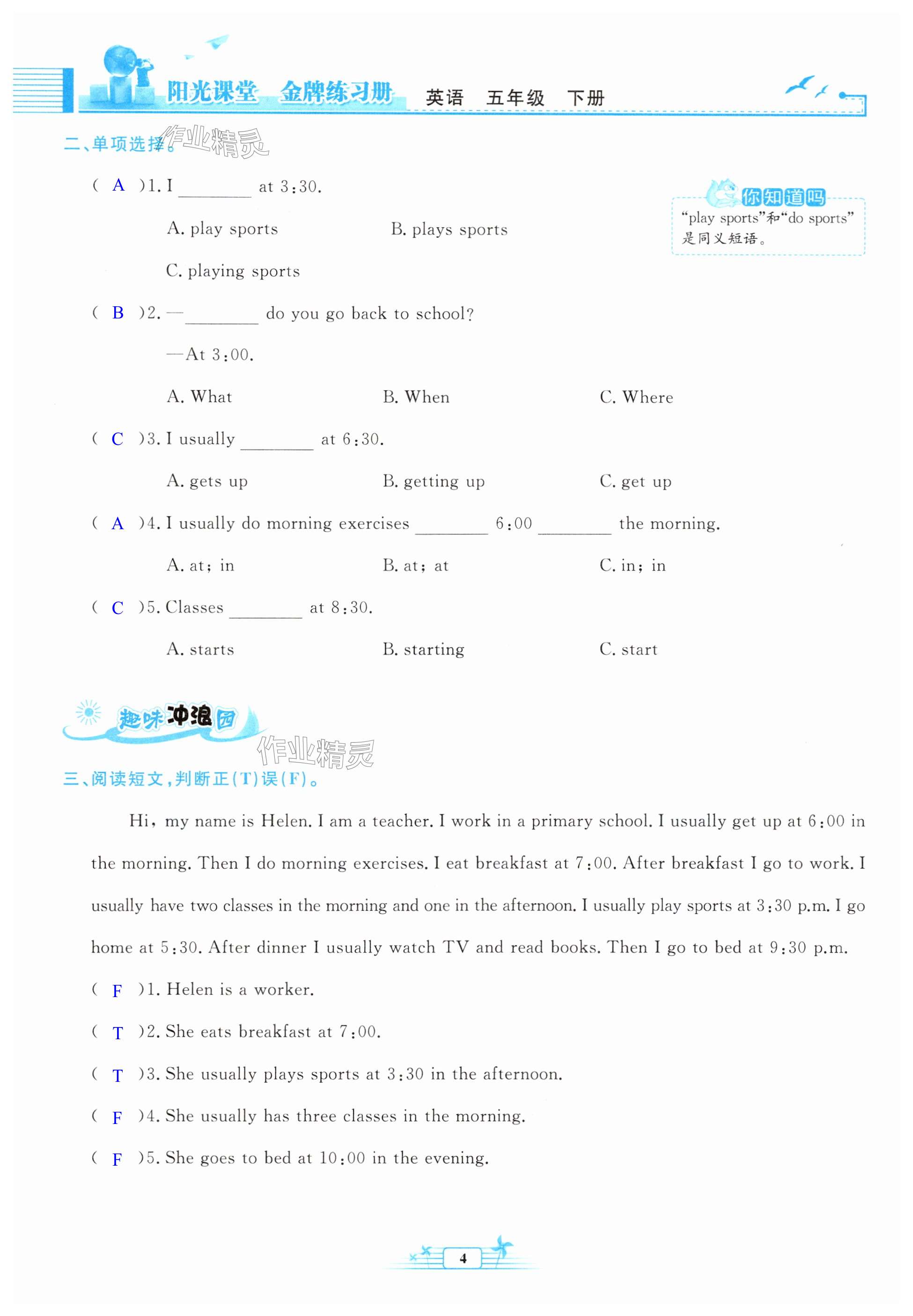 注:目前有些书本章节名称可能整理的还不是很完善,但都是按照顺序排列的,请同学们按照顺序仔细查找。练习册 2025年阳光课堂金牌练习册五年级英语下册人教版 答案主要是用来给同学们做完题方便对答案用的,请勿直接抄袭。