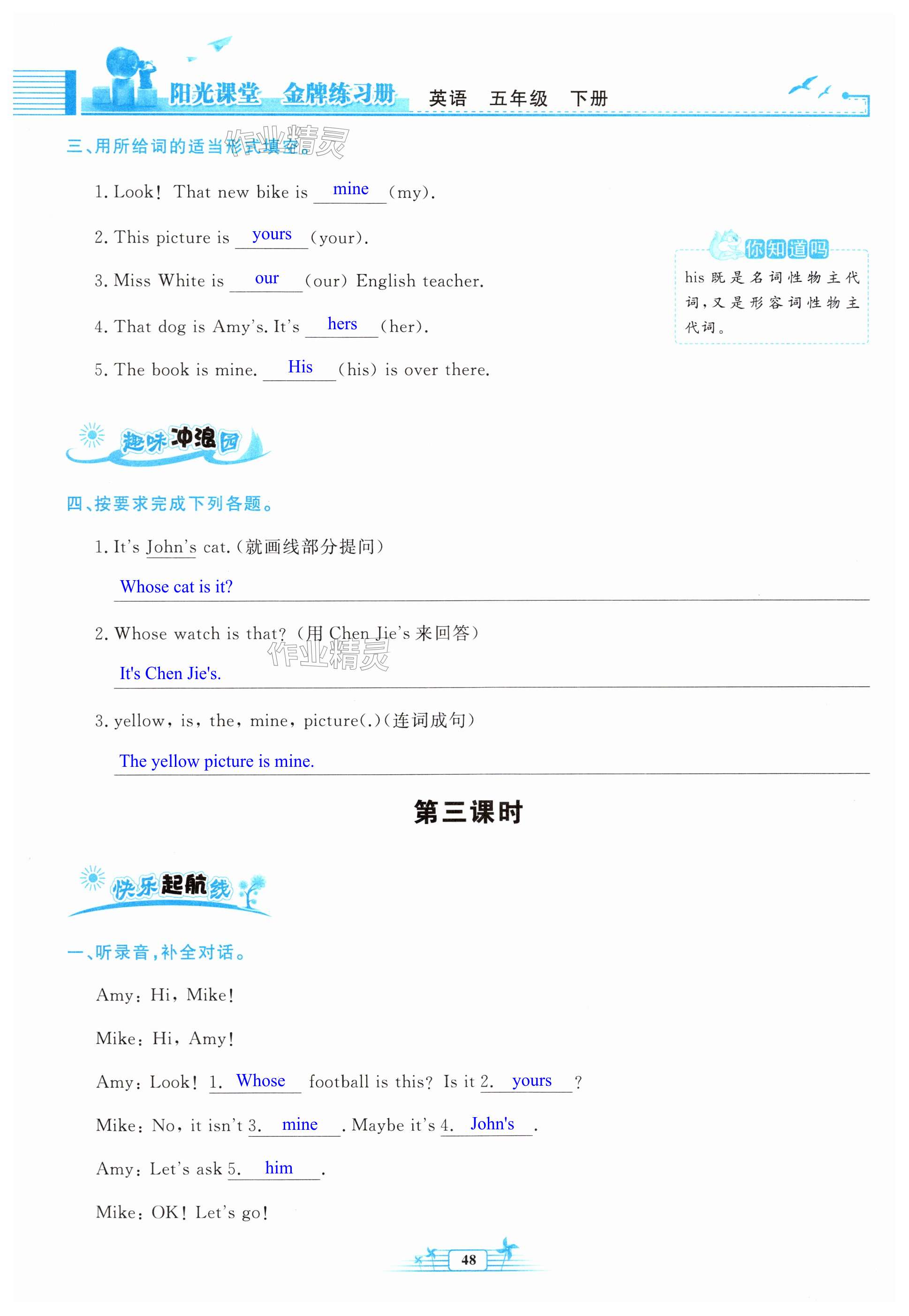 注:目前有些书本章节名称可能整理的还不是很完善,但都是按照顺序排列的,请同学们按照顺序仔细查找。练习册 2025年阳光课堂金牌练习册五年级英语下册人教版 答案主要是用来给同学们做完题方便对答案用的,请勿直接抄袭。