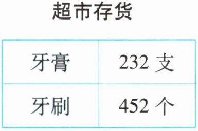 4. 超市准备将 2 支牙膏和 4 个牙刷包装成 1 个礼盒。根据存货,他们最多可以包装多少个这样的礼盒?