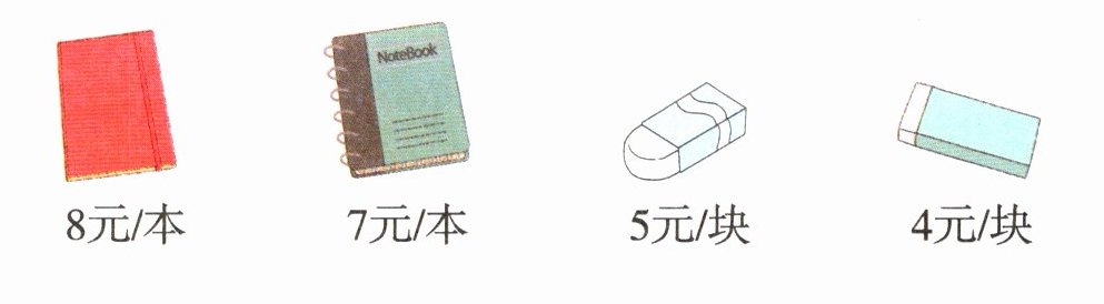 128÷8=16(本) 128÷7=18(本) …… 2(元) 135÷5=27(块) 135÷4=33(块) …… 3(元) 买的是8元一本的笔记本和5元一块的橡皮,买了16本笔记本和27块橡皮。分析分别用总钱数除以每种商品的价钱,没有余数的就是买的那种。