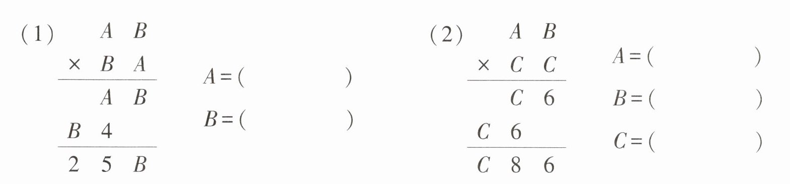 4. 你能猜出下面的字母分别代表什么数字吗?(同一题中相同的字母代表相同的数字)