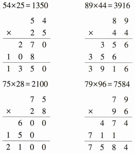 75×28 = (25×4)×(3×7) = ( )×( ) = ( )