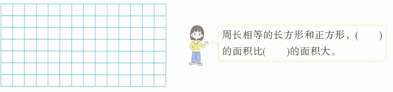 3. 在方格纸上分别画出周长是 16 厘米的长方形和正方形,并通过比较它们的面积填空。( 每个小方格代表 1 平方厘米 )
