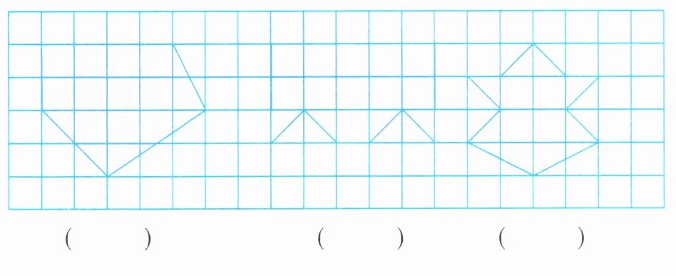 3. 下面三个图形中,哪个面积最大?画“○”。哪个面积最小?画“△”。(每个小方格的面积是 1 平方厘米)