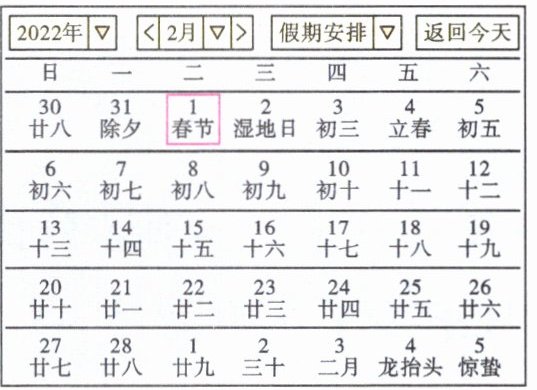 2022年的春节是( )月( )日,再过( )天就是元宵节。