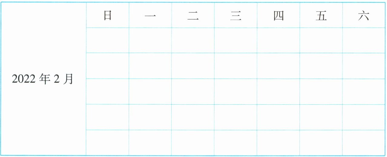 4. 2022年2月份的最后一天是星期一。请你制作2022年2月份的月历表。