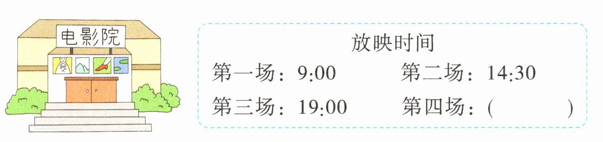 (2)第四场电影的放映时间是晚上 8:50,请在图上用 24 时计时法表示出来。