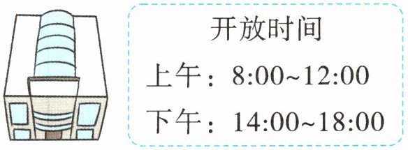 (1)右图是图书馆的开放时间。丽丽想放学后去看书,她最晚应该下午( )时离开,图书馆一天共开放( )小时。