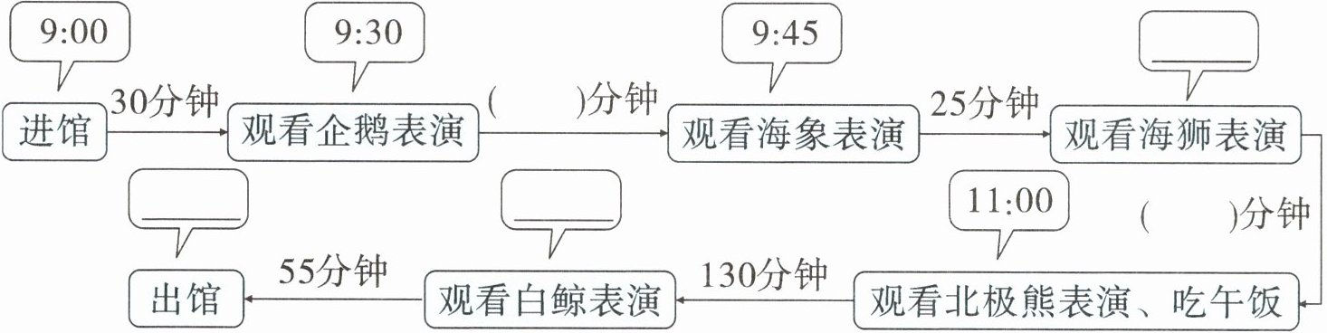 2. 用 24 时计时法把海洋馆一日游的时间补充完整。