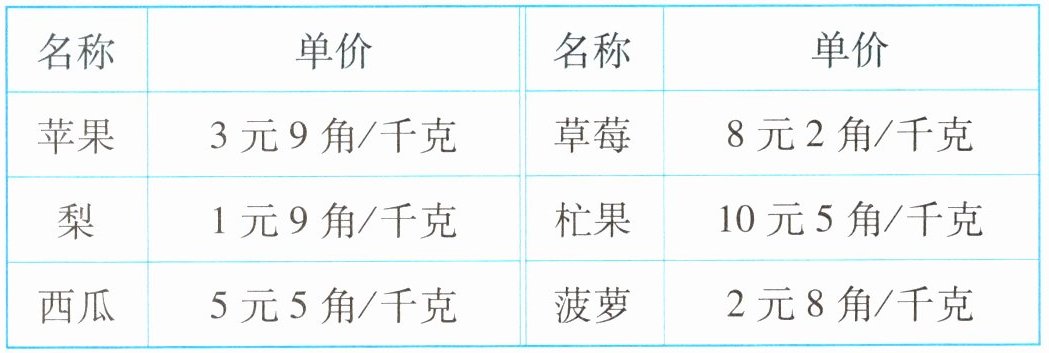 草莓:( )元/千克 杧果:( )元/千克 菠萝:( )元/千克