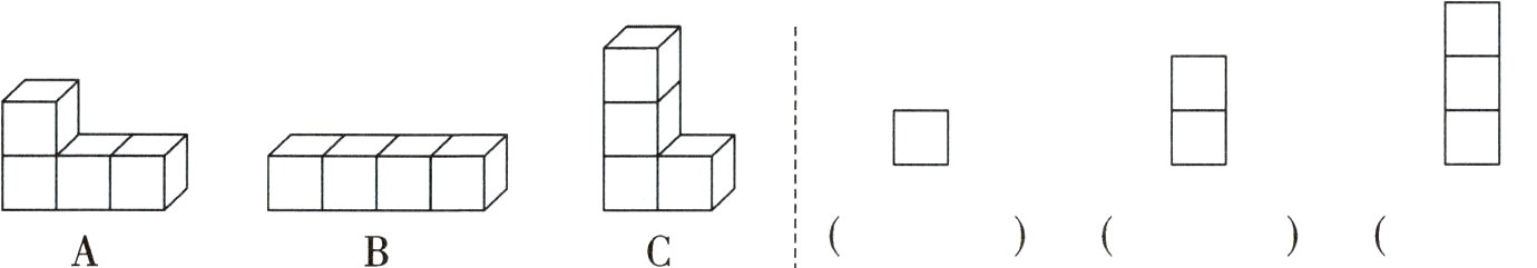 B A C 分析从同一个方向观察不同的物体,看到的平面图形的形状可能不同。从每一个物体的左面认真观察,首先注意区分看到了几个小正方形,然后判断这些小正方形是如何排列的,最后对照右边的平面图形填写。