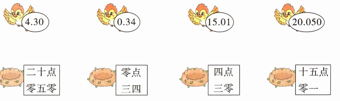 (1)三十五点零五 分析 读小数时,先读整数部分,按整数的读法读;再读小数点,小数点读作“点”;最后读小数部分,依次读出每一个数位上的数字。