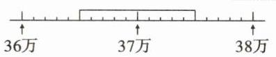 4. 我是一个整数,我的近似数是37万,我最大是( ),最小是( )。请在下图中标出我的范围。